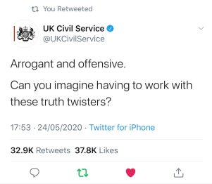 It’s been two days since the story broke and the lockdown messaging fell apart — a blur of hysterical ministers and crisis comms. As of this morning she’s been covering Twitter as well, because James is off sick with “a cough”. Annoying, but not half as annoying as the boss fluffing her name in front of everyone on Zoom. That really grated.