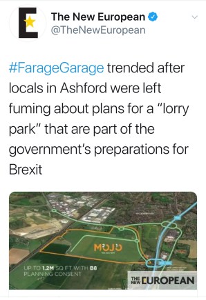 That same twenty-seven acres has now been bought by the government, without any consultation, as a post-Brexit lorry park for 2000 HGVs waiting to process their export paperwork.
