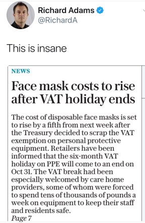 Certainly, Steve. As you all know, the AMVCP’s remit is to Alienate as Many Voters as Comprehensively as Possible. And I must say that we’ve done a sterling job this month. Our lacklustre Job Support and SEISS schemes, along with the PM’s warning of a no-deal Brexit, have thoroughly pissed off the UK’s business and self-employed sectors. Using Manchester’s Tier 3 finance negotiations to take Mayor Burnham down a few pegs has also successfully enraged Red Wall voters. And our triumphant vote against ‘freebie’ school meals has resonated with almost everyone, burnishing our reputation as callous shits. Our reintroduction of VAT on face masks as the pandemic rages is but the icing on the cake… You have a question, lowly intern?