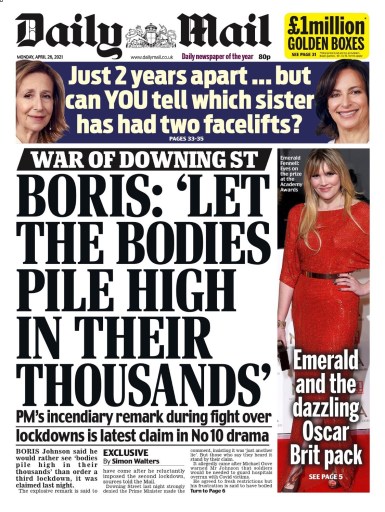 Boris: The Parliamentary Commissioner for Standards, apparently. Oh, and the nurses we gave a measly 1% pay rise, not to mention businesses who’ve gone tits up thanks to our handling of Covid and Brexit.