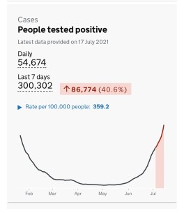 Graph from https://coronavirus.data.gov.uk/, 18 July 2021.